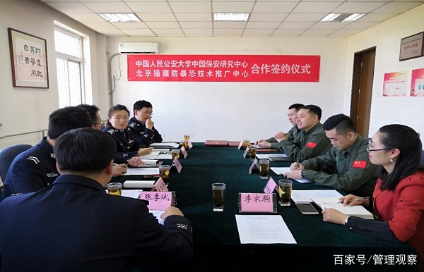 《祖国》记者北京讯:4月10日上午,中国人民公安大学中国保安研究中心与北京猎鹰防暴恐技术推广中心在中国人民公安大学正式举行签约仪式。