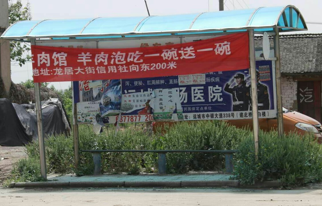 为了方便广大群众乘车,政府在各公交站点设立了候车亭。5月4日,笔者在盐湖区龙居镇公交站候车亭看到,一硕大广告条幅将公交站牌遮盖的严严实实。候车亭显然成了免费广告牌,各种广告五花八门一些涉嫌违法小广告也不乏其中。这些泛滥成灾小广告成了城市的‘牛皮癣’,本应为乘客提供的座椅也布满油渍和灰尘,地上杂草丛生,已严重影响到广大群众生活。(杨建峰 王旭东)