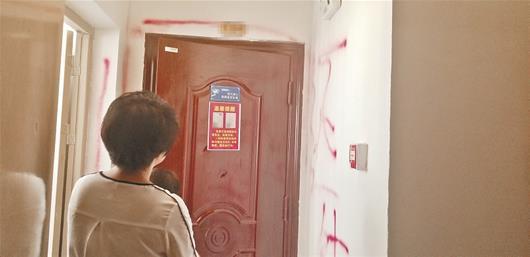图为:房门附近被人喷上红漆