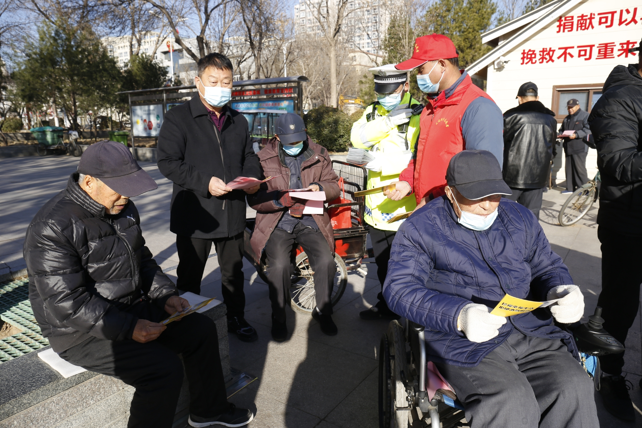 协助交警派发交通安全材料